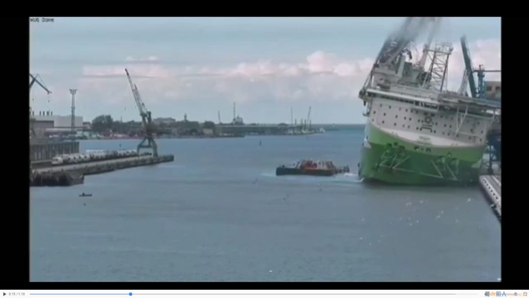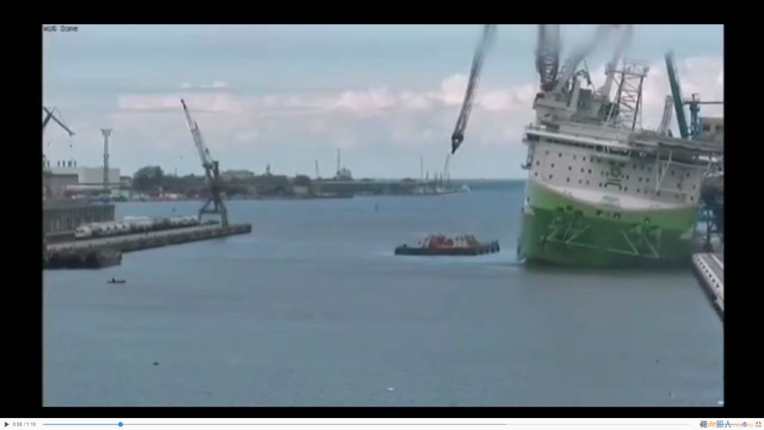 5月2日,比利时DEME公司旗下的风电安装船 Orion 1 在进行载荷测试时,吊机拦腰折断,事故导致船体受损,断裂的吊机由利勃海尔(Liebherr)提供。这一事故引发业内热议:  crane-accident-during-overload-test-in-rostock